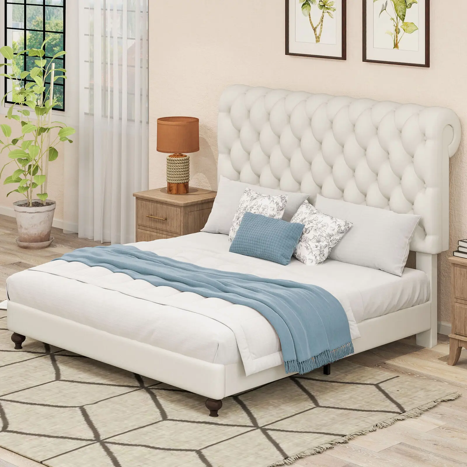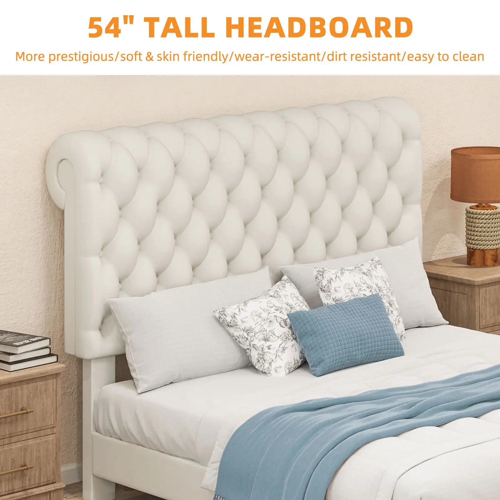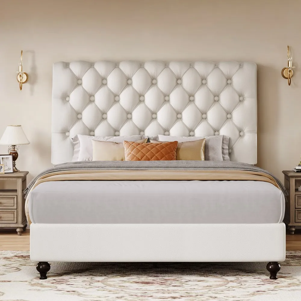 [Elegant Design] Upholstered in foam-filled polyester for an inviting feel, the included headboard boasts button-tufted detailing that adds a touch of visual texture. It gives any room a spark of style that's both modern and timeless.
