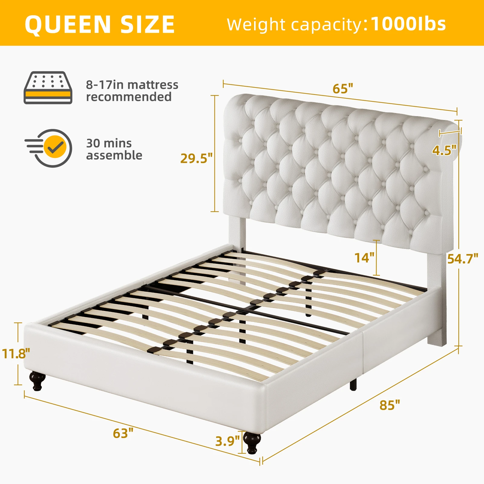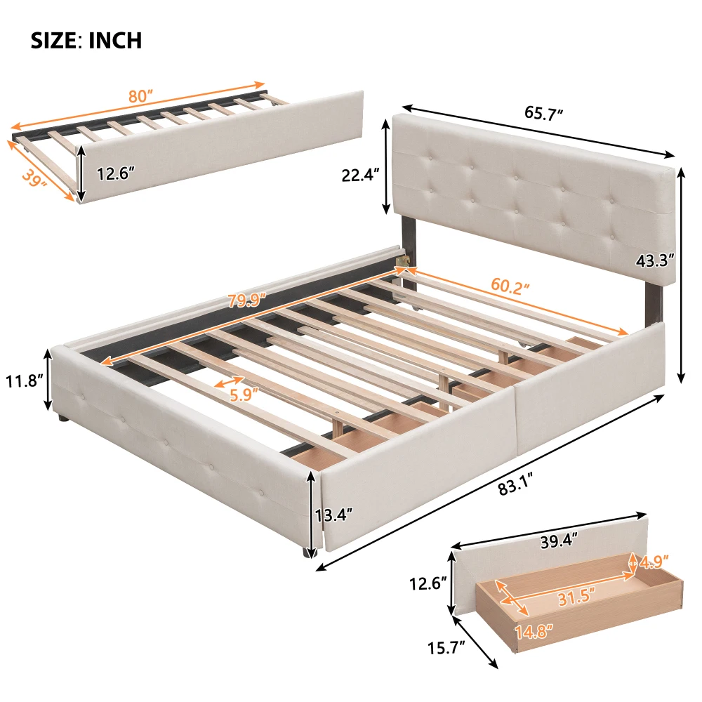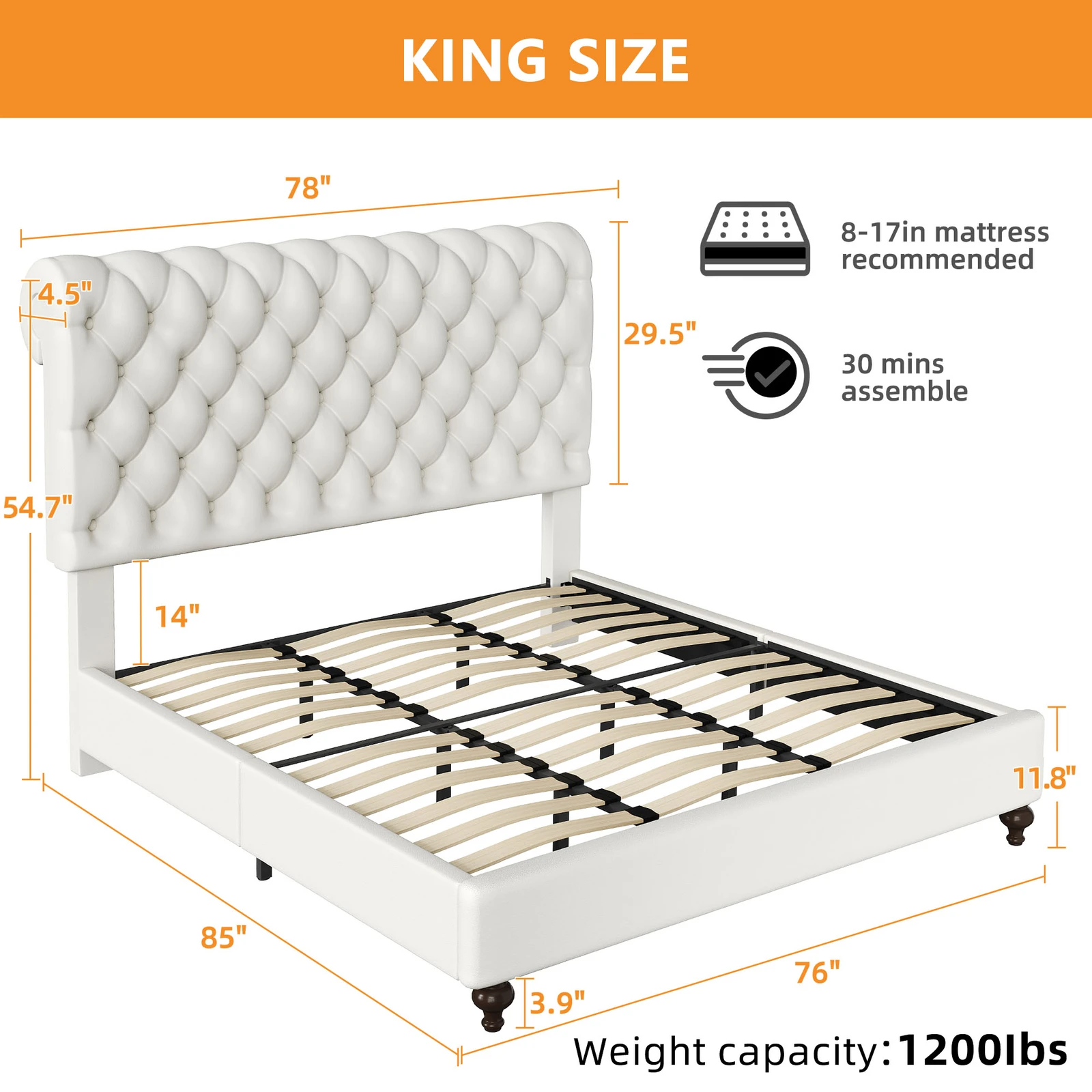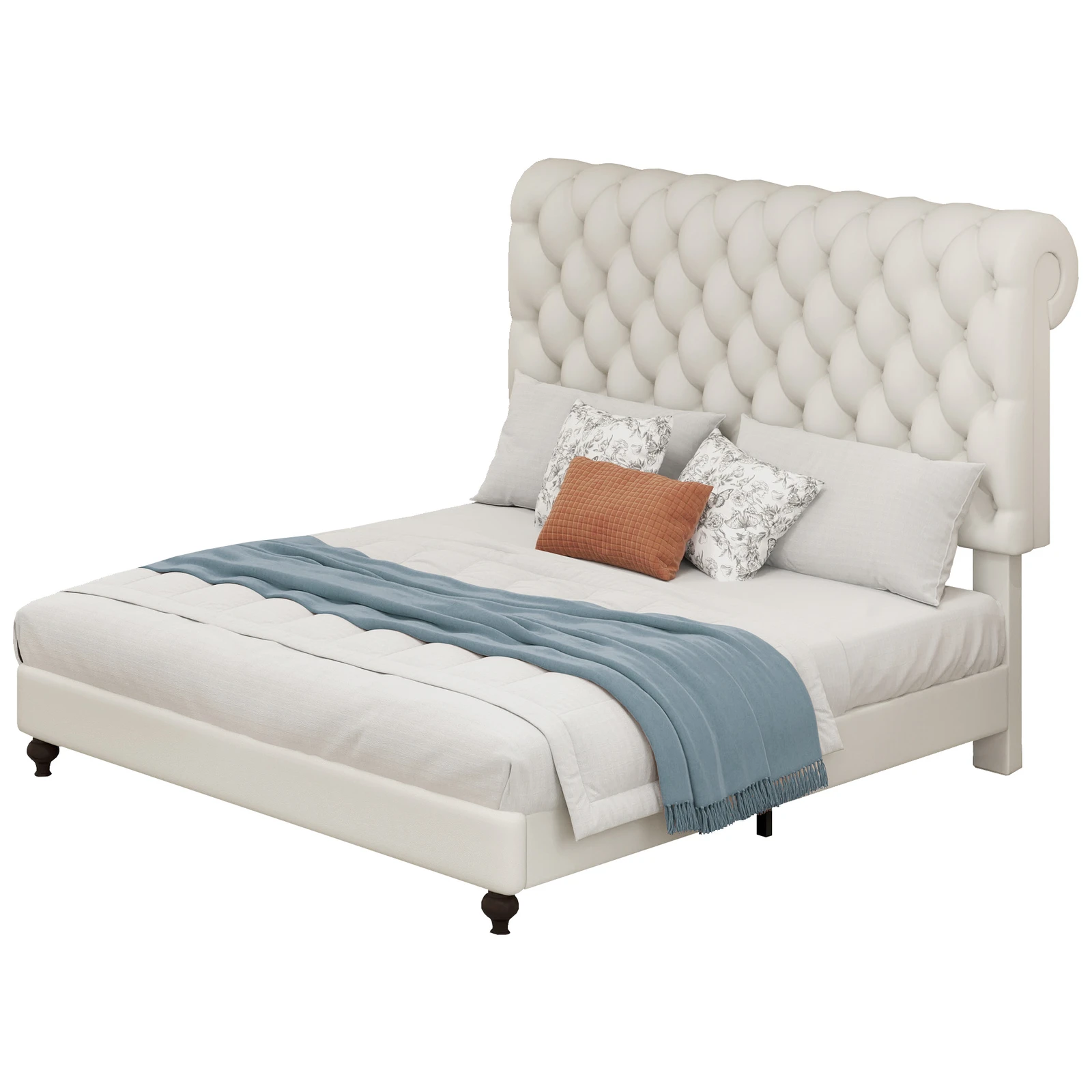[Elegant Design] Upholstered in foam-filled polyester for an inviting feel, the included headboard boasts button-tufted detailing that adds a touch of visual texture. It gives any room a spark of style that's both modern and timeless.